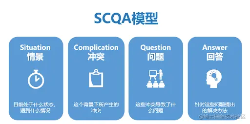 SCQA分析是一个“结构化表达”工具,即S(Situation)情景、C(Complication)冲突、Q(Question)疑问、A(Answer)回答。