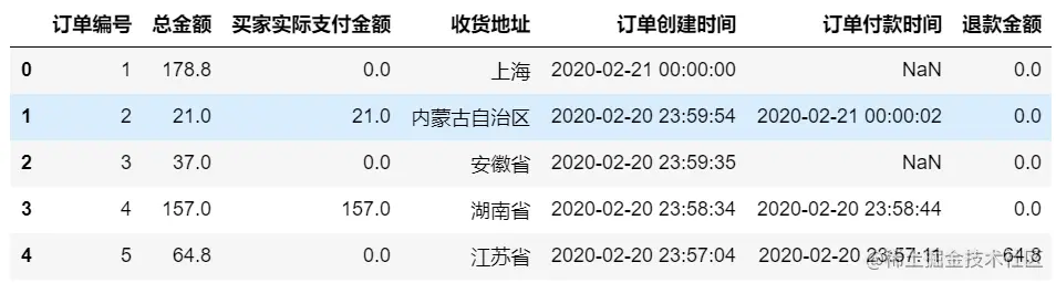 f. 订单付款时间:付款时间(如果未付款,显示NaN)