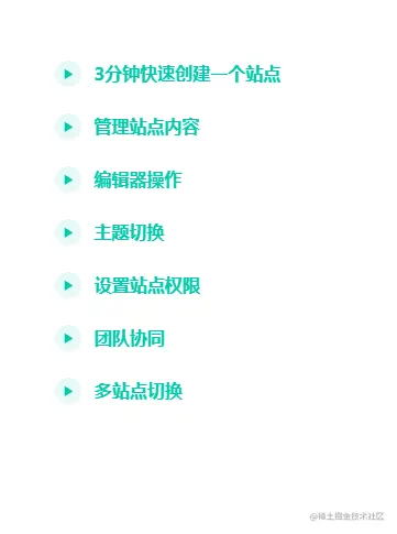 baklib作为一个专业知识库及帮助文档制作软件,它本身的使用流程非常方便,对小白较为友好,在刚刚进入产品首页时,便可以看到右边导航栏中的快速入门选项,点进去我们就可以发现baklib团队为初次使用的用户准备了建站—管理内容—编辑器操作—主题切换—设置站点权限—团队协同—多站点切换,这一整套使用流程的指导视频,让客户轻松上手、快速入门,而且搭建一个网站完全不用任何代码,这一点让只会文案工作的小编也能搭建出一个漂亮直观的门户网站