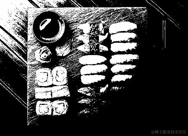 对于局部受光的图像进行全局阈值,可能会出现“无论设置什么阈值参数,都无法满足全图要求”的尴尬。比如上面这幅图像,直接进行全局阈值时,左上半边的寿司全都显露出来时,右下半边还是一片黑色。