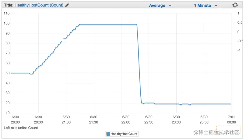 一旦我们部署了新代码,服务器的数量就从100台服务器大幅下降到大约20台服务器。