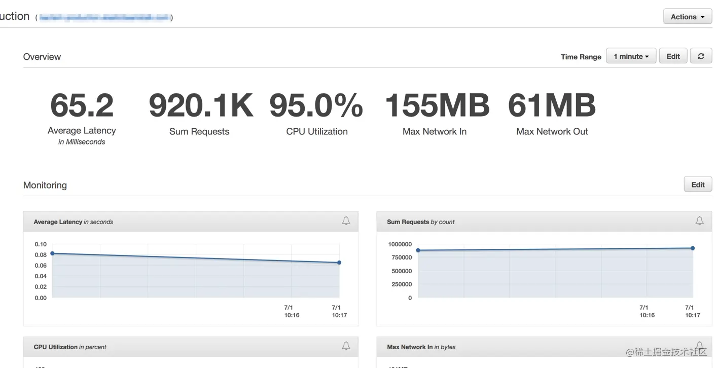 在弹性负载均衡器完全热身后的几分钟,我们看到我们的ElasticBeanstalk应用程序每分钟可处理近一百万个请求。 通常,我们早上有几个小时的流量高峰,每分钟超过一百万。