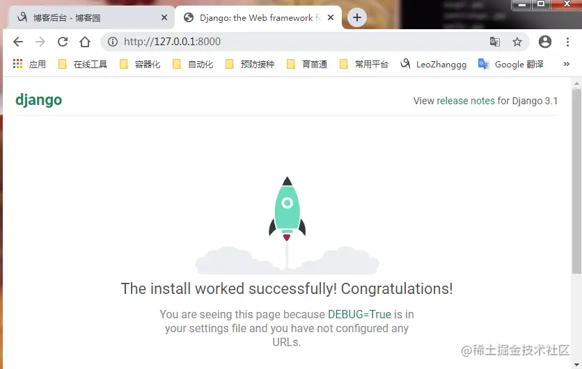 最后我们就可以使用 **127.0.0.1:8000 **打开浏览器访问了 。