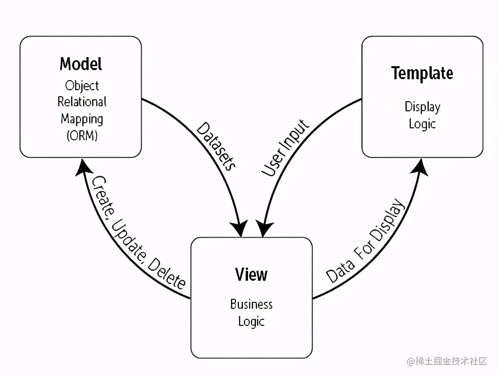 Django 本身基于 MVC 模型,同时也是一个MTV模型 。Django的MTV 模式本质上和 MVC 是一样的,都是为了各组件间保持松耦合关系,只是定义上有些许不同。