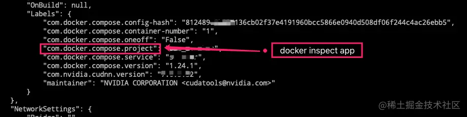**解决方法:**发现 A 和 B 两组服务会串台的原因,原来是 docker-compose 会给启动的容器加 label 标签,然后根据这些 label 标签来识别和判断对应的容器服务是由谁启动的、谁来管理的,等等。而这里,我们需要关注的 label 变量是 com.docker.compose.project,其对应的值是使用启动配置文件的目录的最底层子目录名称,即上面的 app 就是对应的值。我们可以发现, A 和 B 两组服务对应的值都是 app,所以启动的时候被认为是同一个,这就出现了上述的问题。如果需要深入了解的话,可以去看对应源代码。