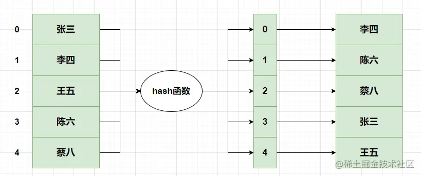 那么有没有可能出现误判的情况呢?这是有可能的,比如现在只有张三,李四,王五,蔡八,hash映射值如下: