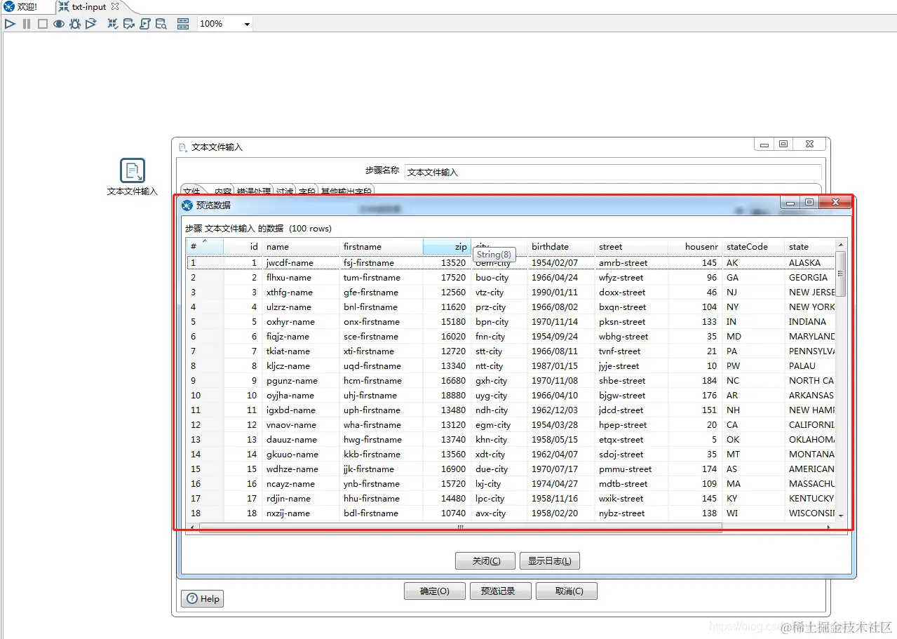 最终展示结果如下图,预览数据中展示的就是从txt文档中获取的数据。