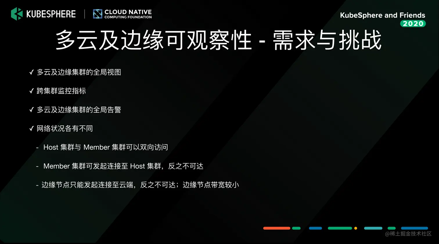 KubeSphere 在 3.0 版本中已经支持了多集群的管理,将会在 3.1 版本中支持边缘计算。所以这就产生了一个话题——多云及边缘计算的可观察性。