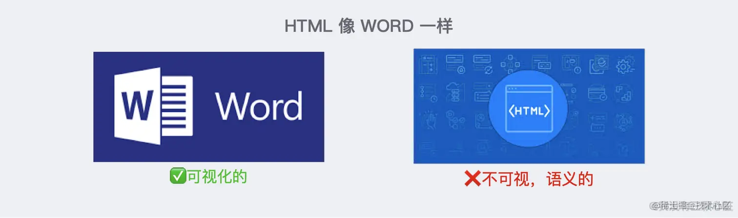 HTML 同 Word 一样提供了标题、段落、列表、表格、图像、粗体、斜体等文本来构建文档。关键区别在于 Word 中的格式文本是可视的,而 HTML 代码纯粹是语义的。