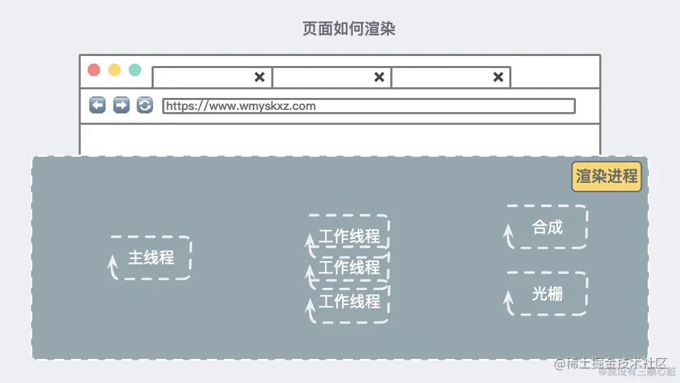 首先,渲染进程内部包含主线程、工作线程、合成线程和光栅线程。