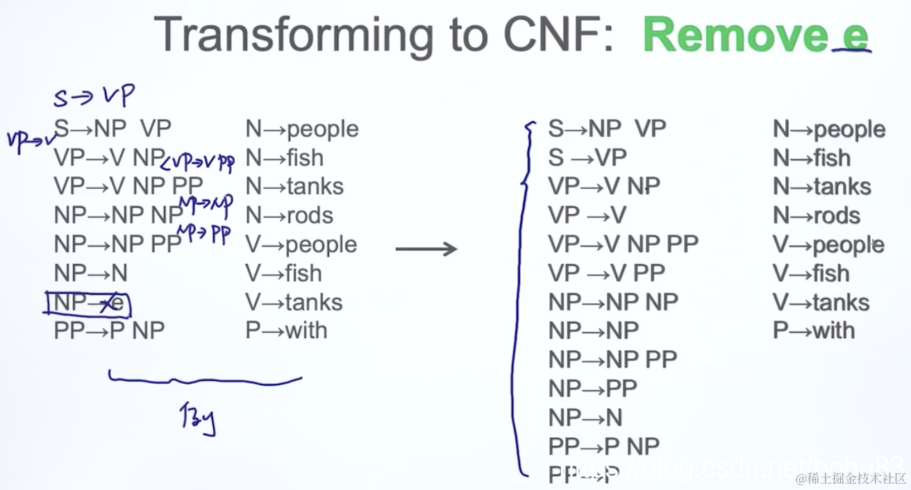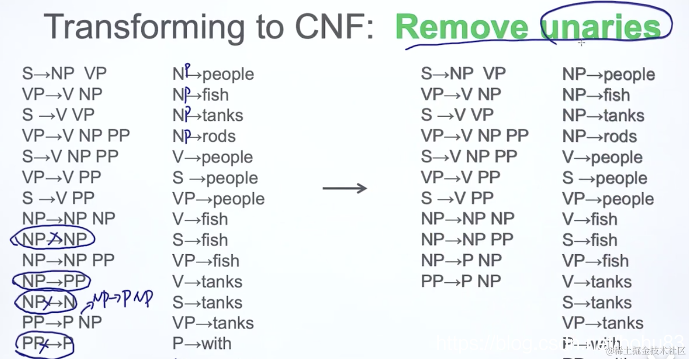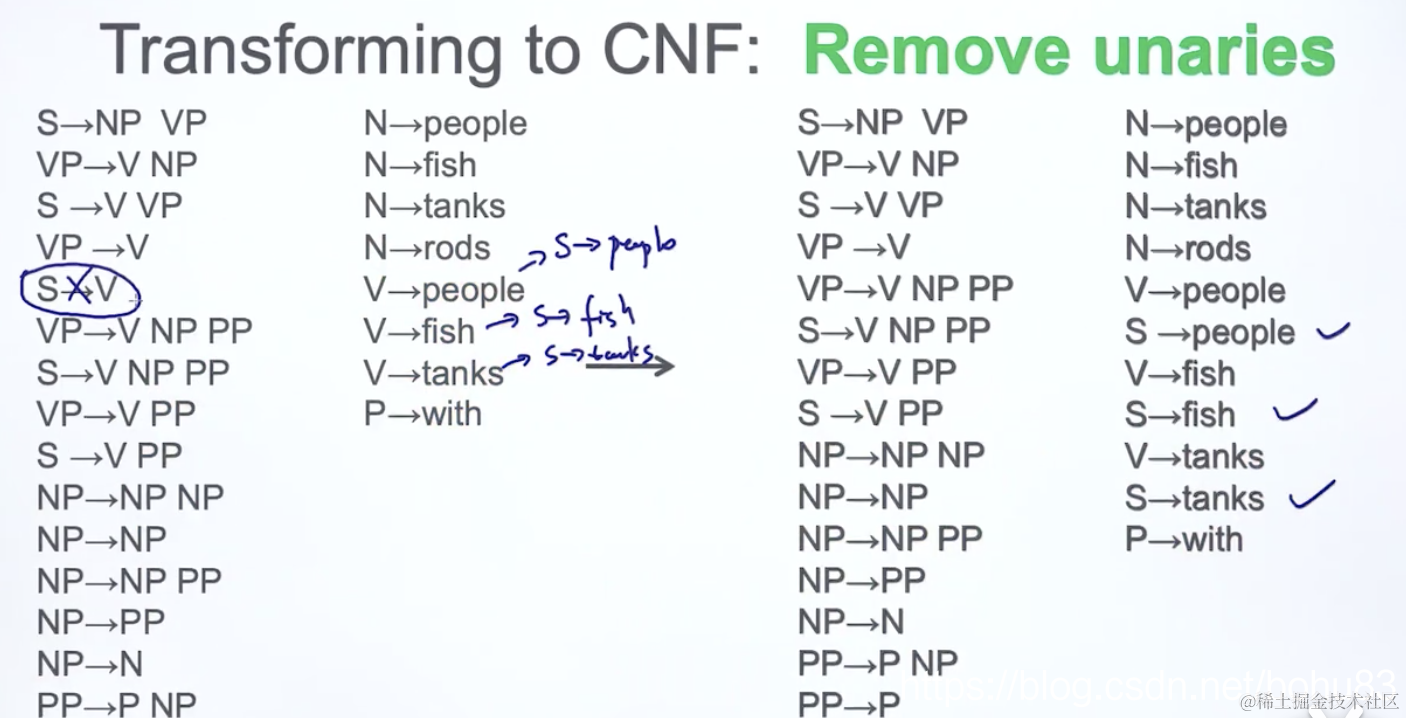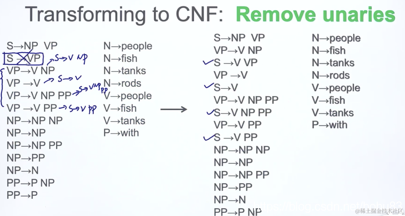 去掉只指向一个值(unaries)的规则,下面截图的例子S->VP