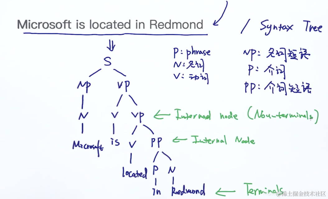 上面的语法树中,叶子节点叫terminal node,非叶子节点叫internal node(non-terminal node)