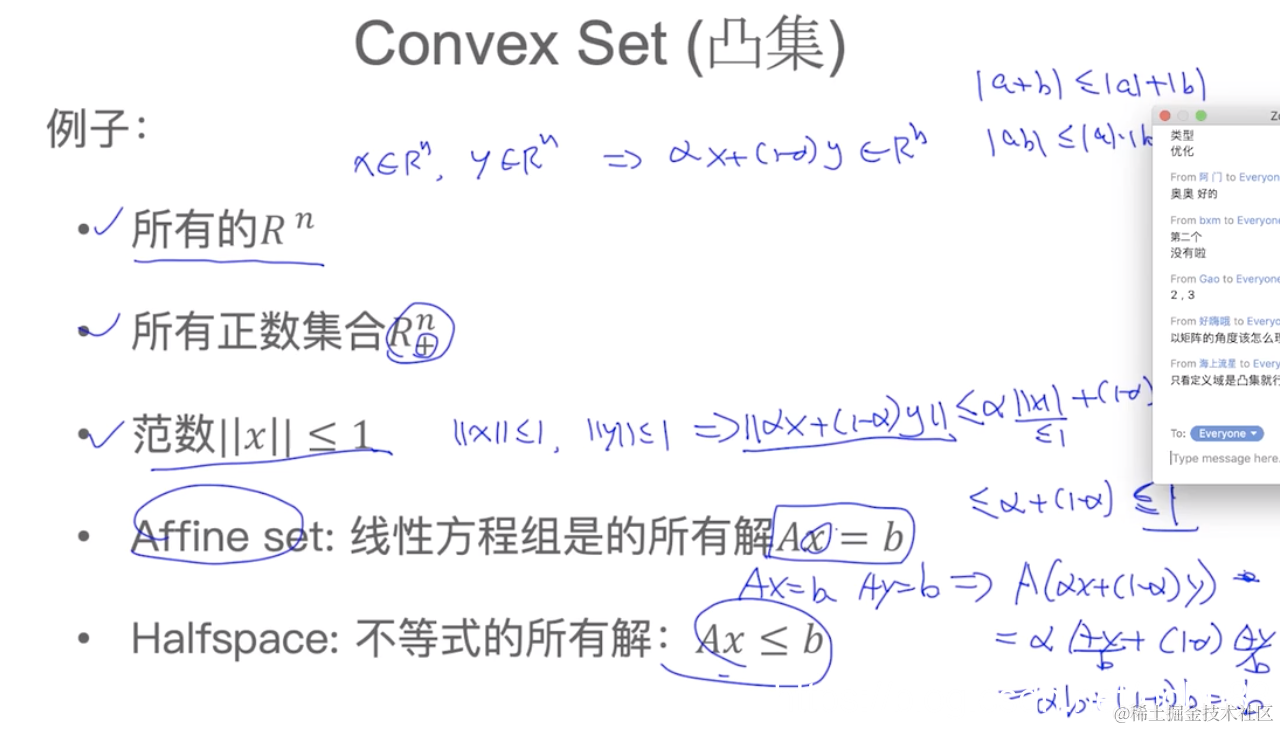 - Affine set: 线性方程组的所有解