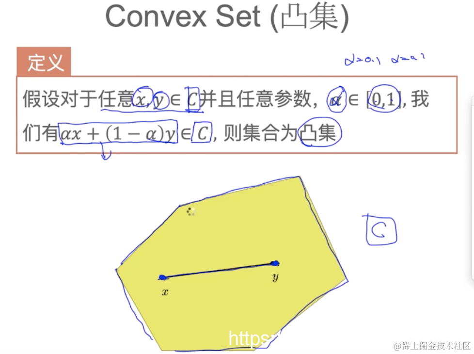 凸集(convex set): 假设对于任意并且任意参数,