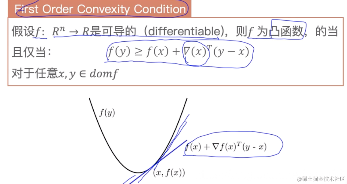 假设是可导的, 则f为凸函数, 当且仅当