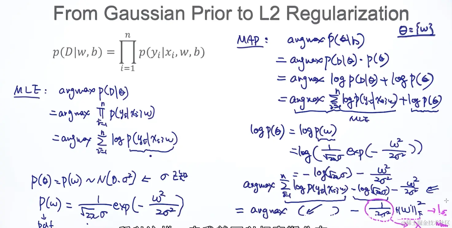 可以看到MAP比MLE多的就是先验概率这一项,这个