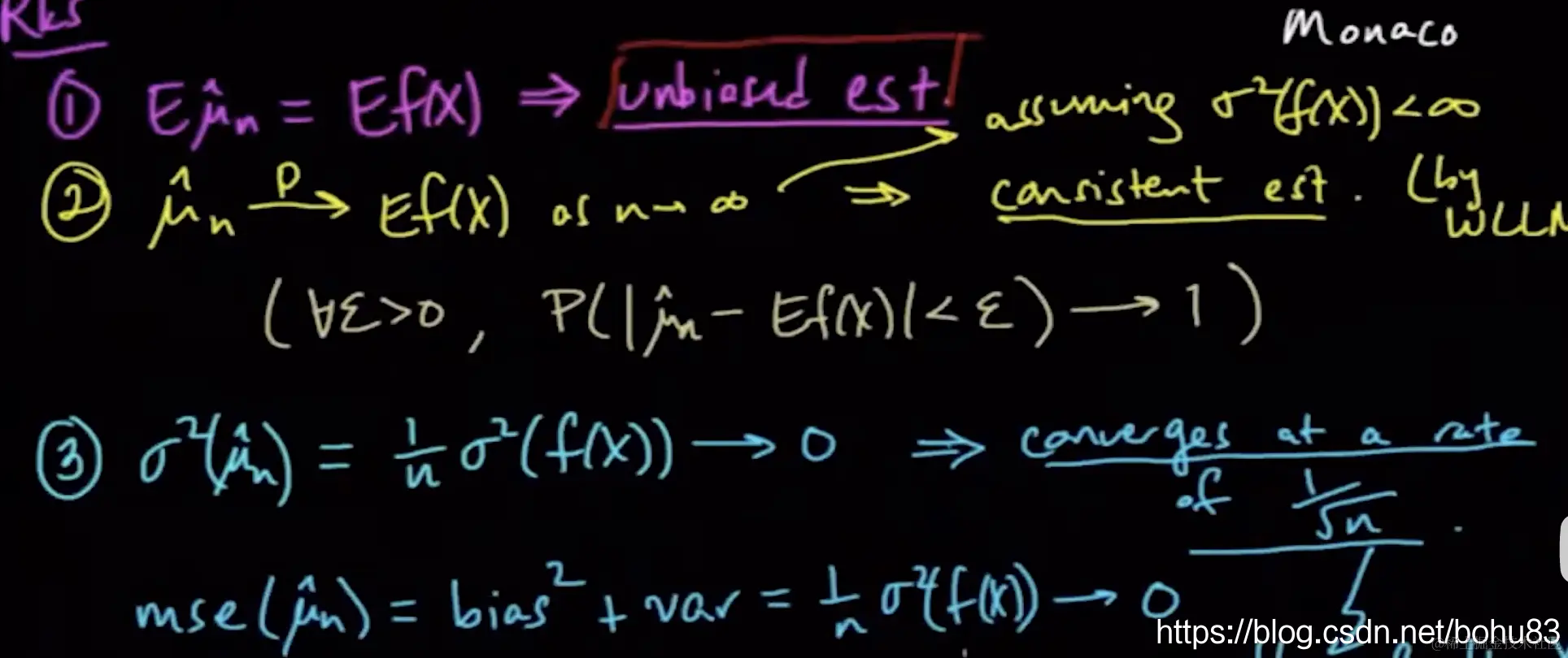 蒙特卡洛方法优点是无偏的估计(求出的样本均值就是实际的概率分布)。