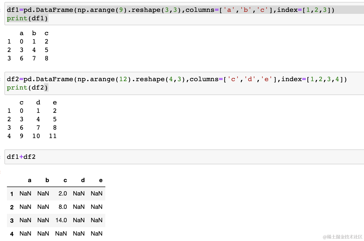 series是基于索引进行算数运算操作的,pandas会根据索引对数据进行运算,若series之间有不同的索引,对应的值就为Nan