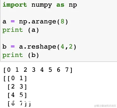 numpy.reshape 函数可以在不改变数据的条件下修改形状,格式如下: numpy.reshape(arr, newshape, order='C')
