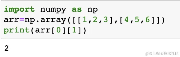 以下实例获取数组中(0,0),(1,1)和(2,0)位置处的元素。