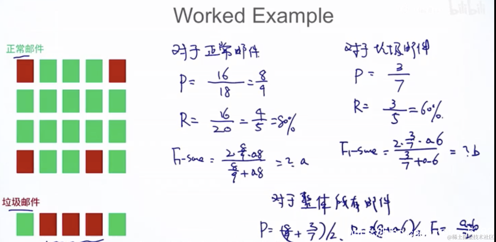 最后的例子,以垃圾邮件为例,计算精确率,召回率