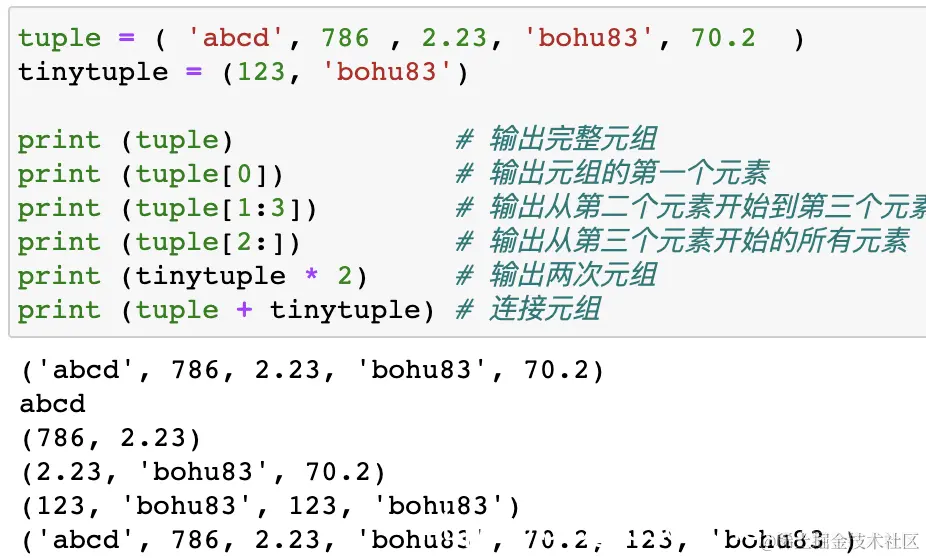tup1 = () # 空元组 tup2 = (20,) # 一个元素,需要在元素后添加逗号string、list 和 tuple 都属于 sequence(序列)。