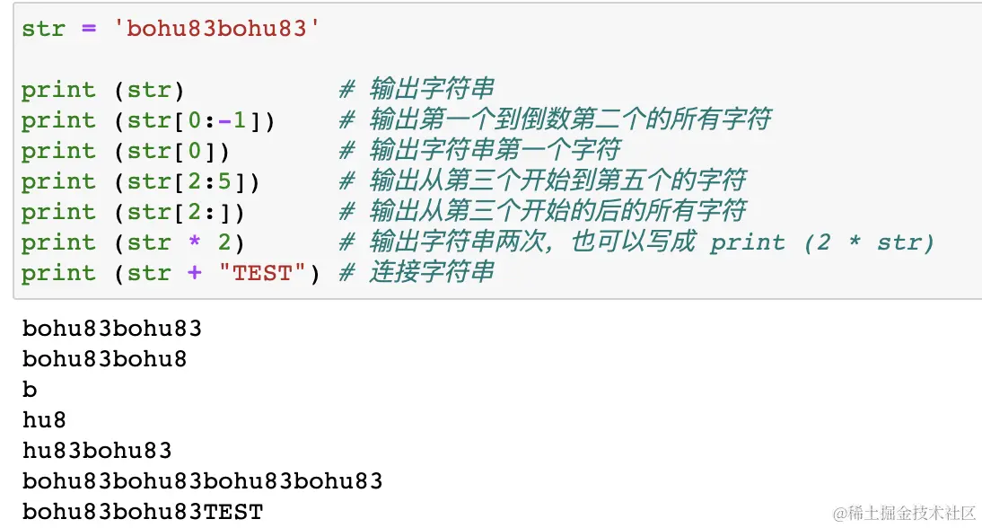 变量[头下标:尾下标]索引值以 0 为开始值,-1 为从末尾的开始位置。