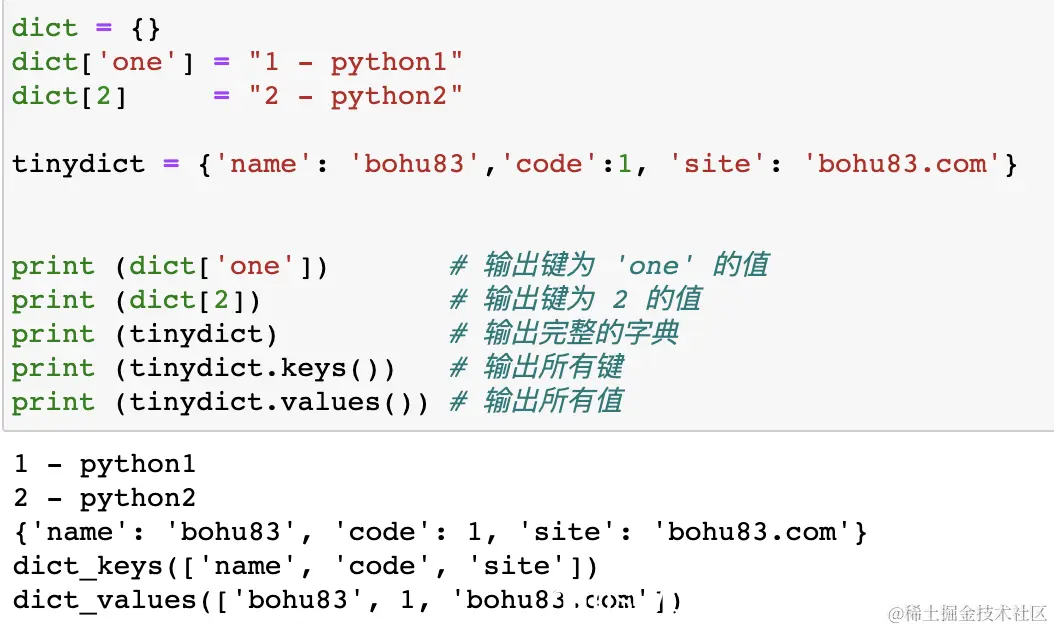 - 2、字典的关键字必须为不可变类型,且不能重复。
