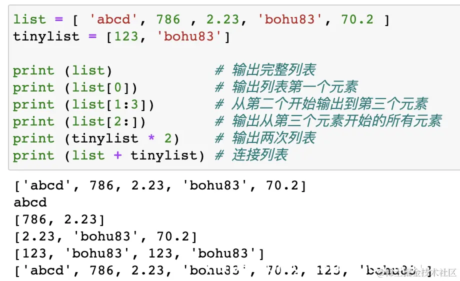 和字符串一样,列表同样可以被索引和截取,列表被截取后返回一个包含所需元素的新列表。