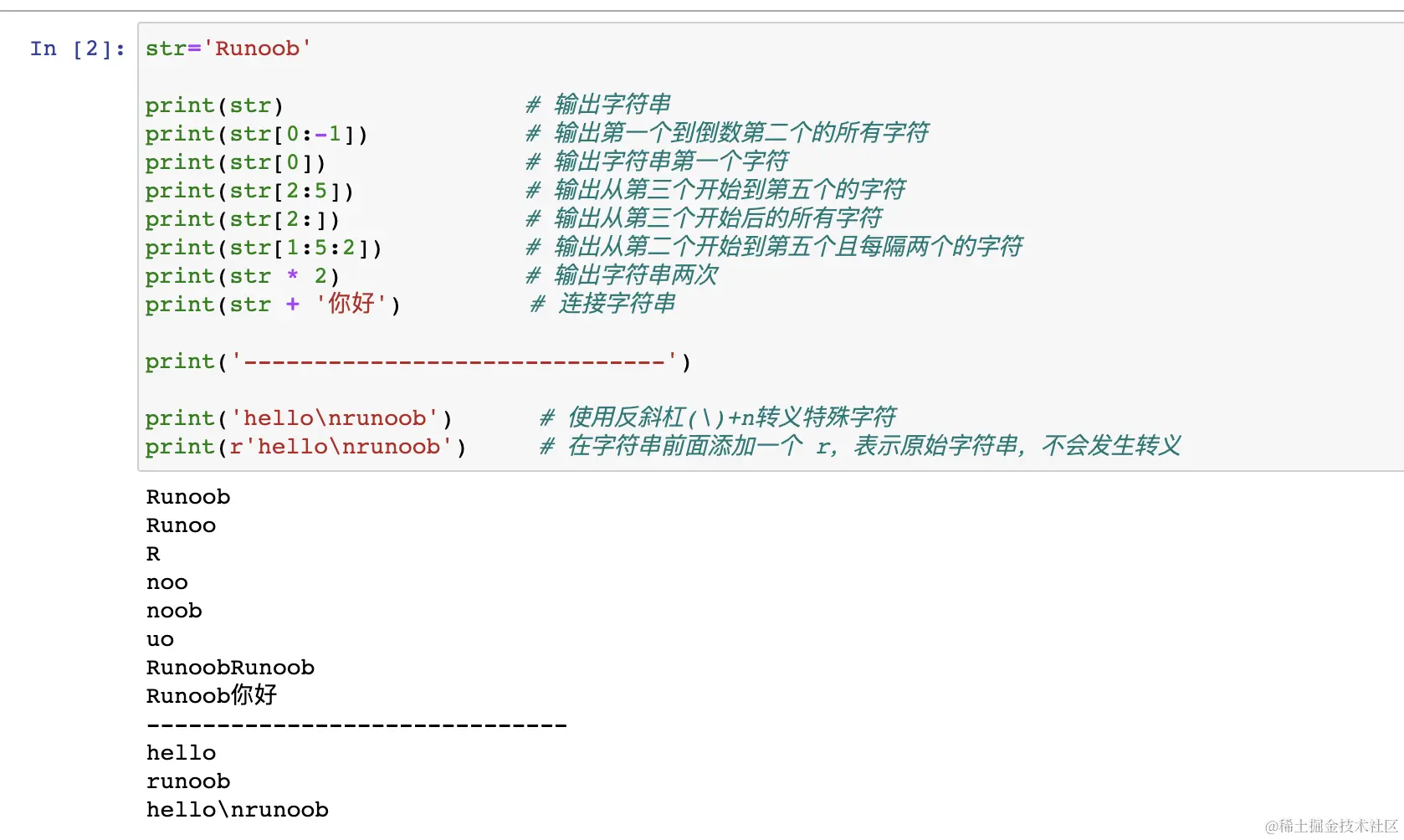 - Python 没有单独的字符类型,一个字符就是长度为 1 的字符串。
