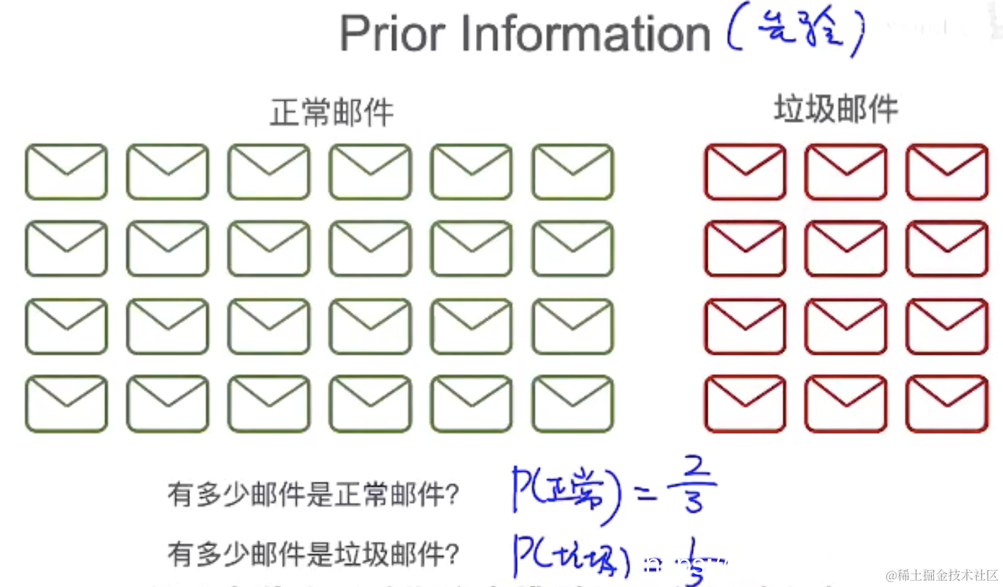 先看先验:正常邮件与垃圾邮件各占一半=1/2;