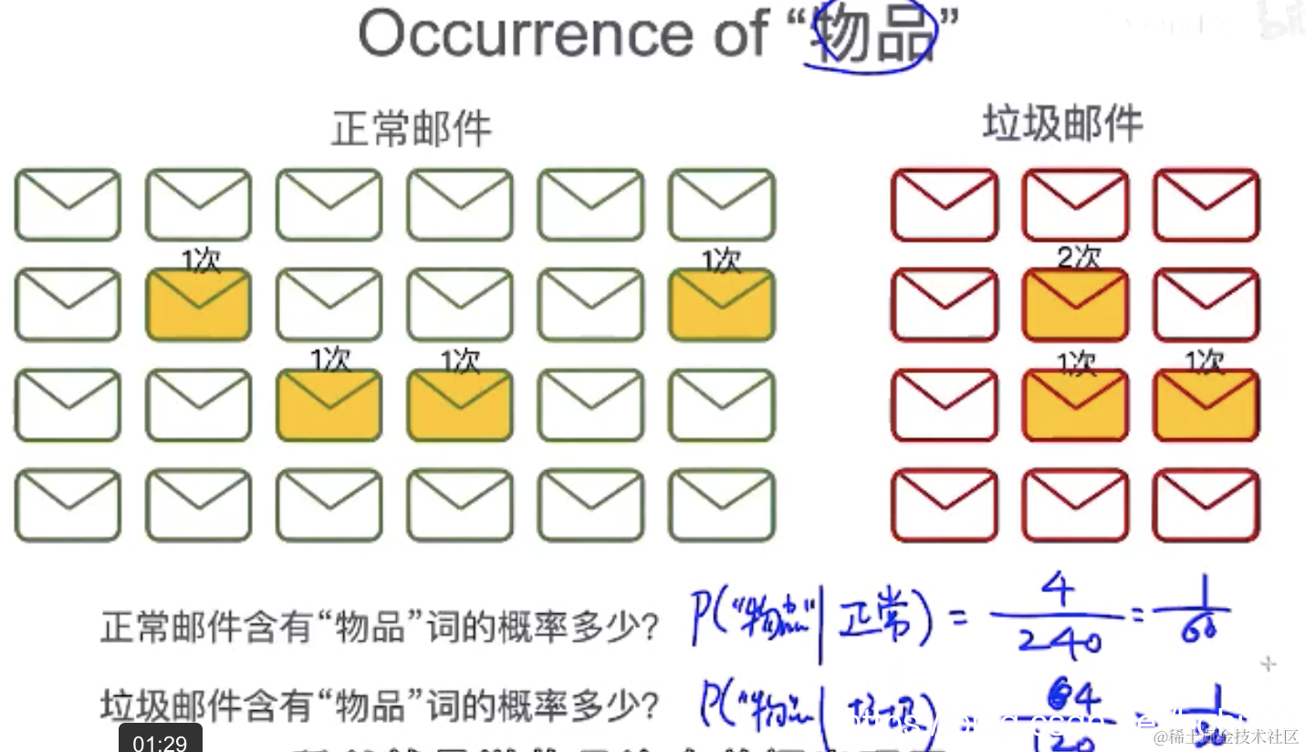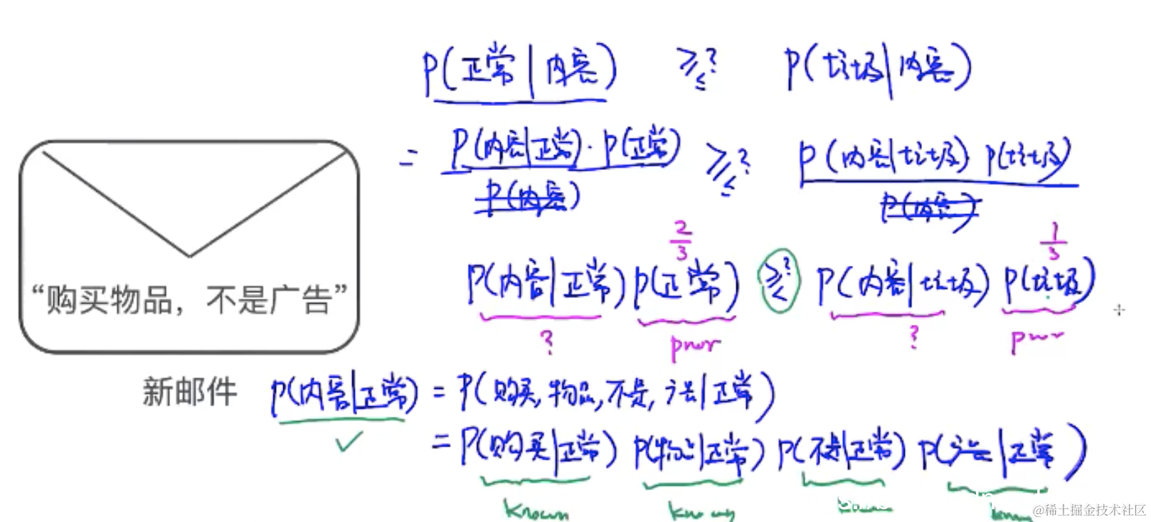 垃圾邮件里经常出现“广告”,“购买”,“产品”这些单词。也就是p(“广告”|垃圾)>p(“广告”|正常),p(“购买”|垃圾)>p(“购买”|正常)……这符合我们判断习惯。那么这些概率怎么计算?