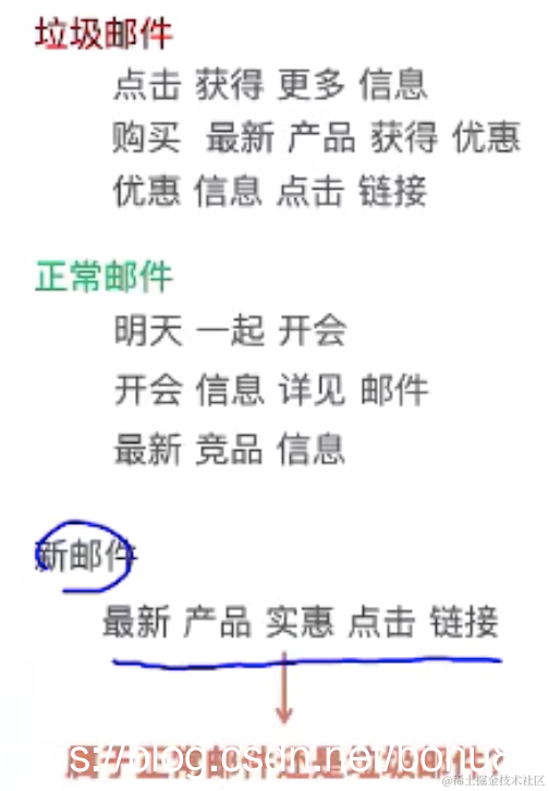 这里面每一项我们都在朴素贝叶斯模型中训练好了,同理,p(内容|垃圾)也可以这样计算,那么最终二者可以进行比较并判断是否是垃圾邮件。