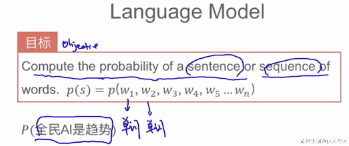 - 从机器学习的角度来看:语言模型是对语句的概率分布的建模。