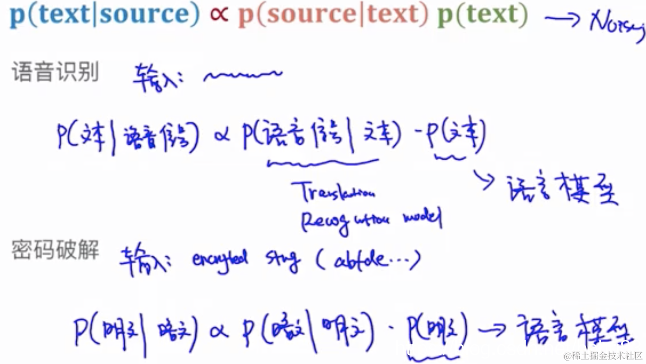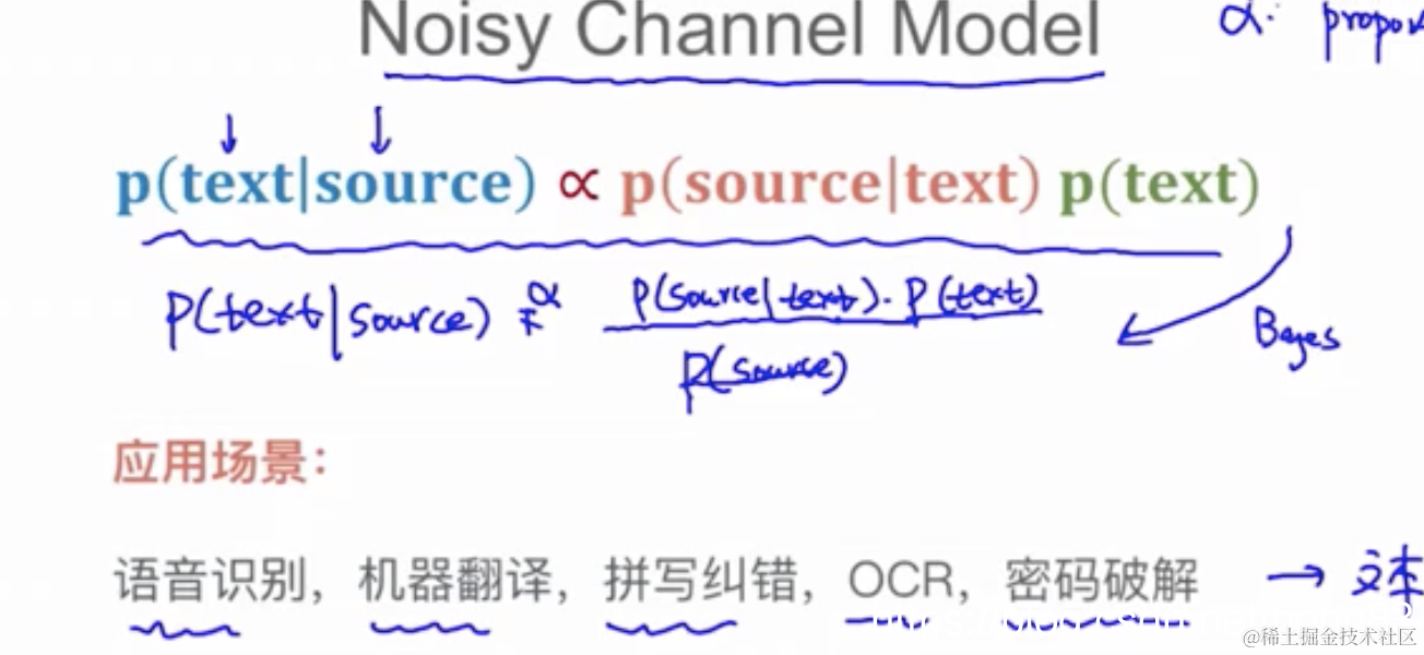 老师在接下来将语言模型之前,先介绍了噪声信道模型。