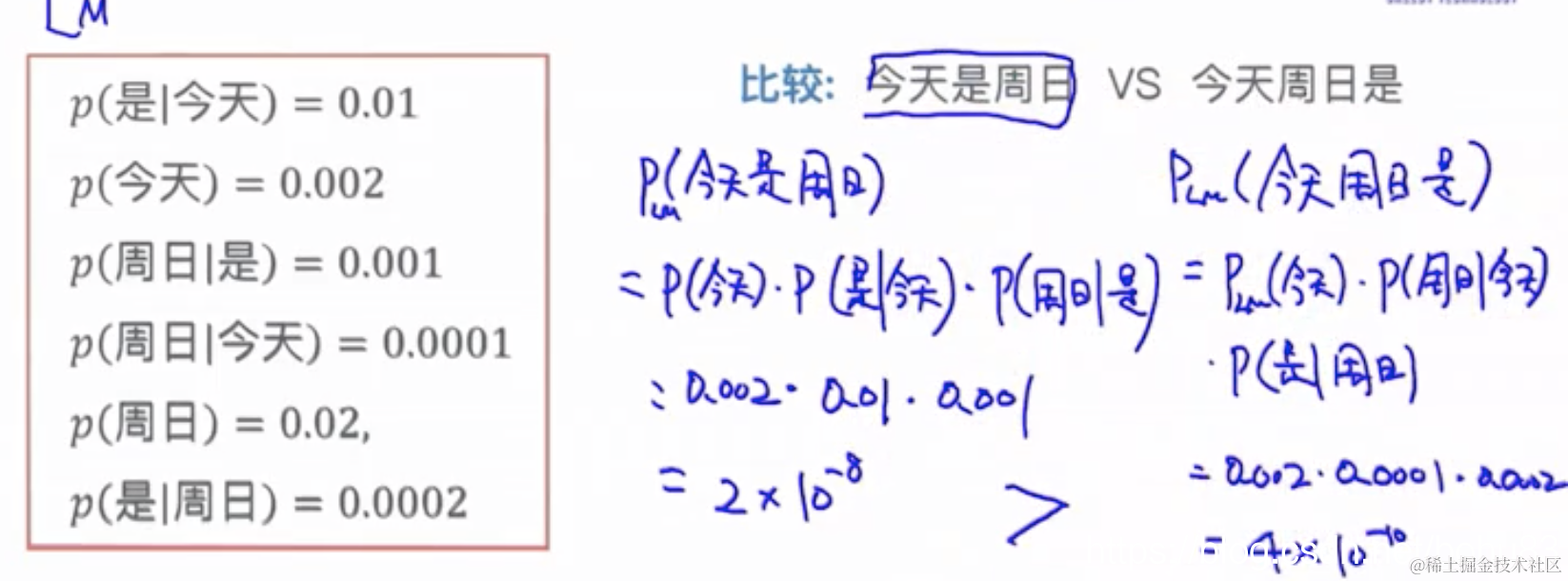 直接看公式可能不好理解,老师给讲了贝叶斯进行推导的过程。