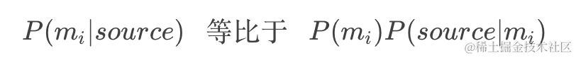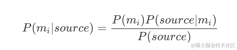 也就是说,在不知道原有信息是内容的情况下,使得p(mi|source)取得最大值的mi,最有可能是原有信息,由上面的贝叶斯公式可得: