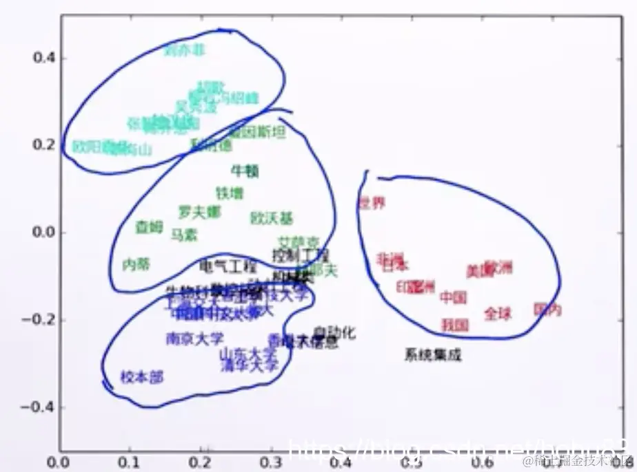 拥有类似的语义的词聚集在一起。
