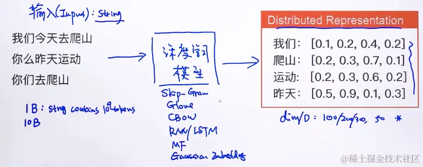 接下来学习每个单词的分布式向量(就是怎么得出来的)。