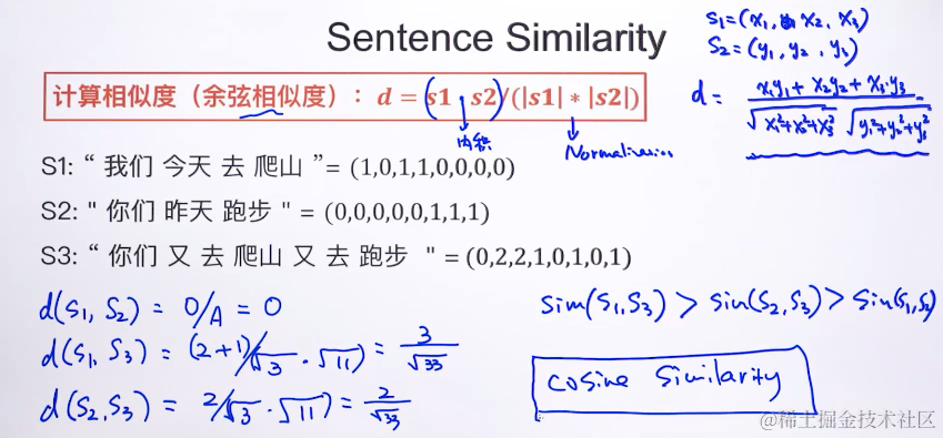 下面;老师的例子,举例假设是3维的,就是s1=(x1,x2,x3),s2=(y1,y2,y3)