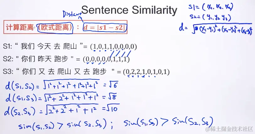 欧式距离越小,句子相似度越高。