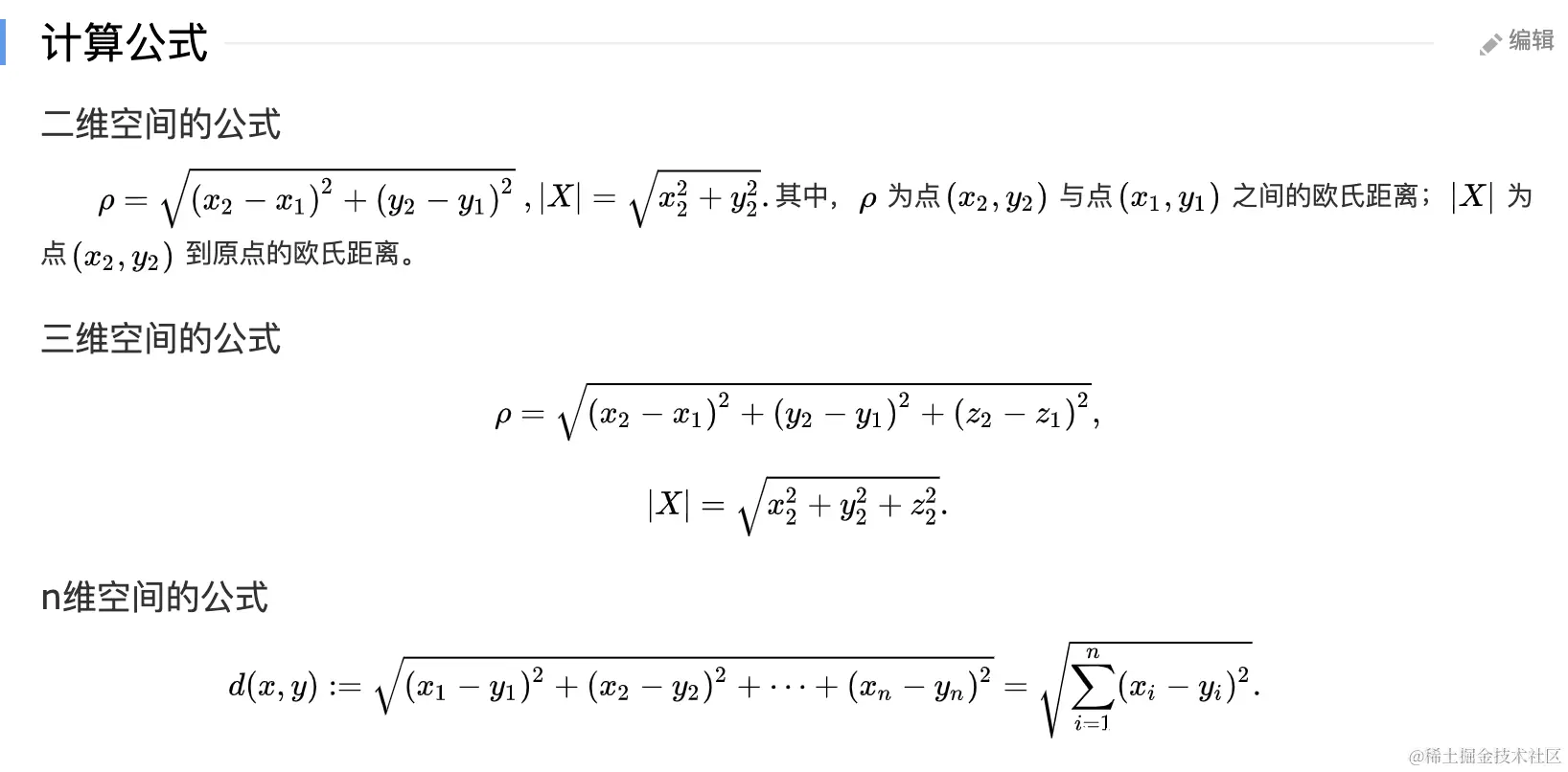 欧几里得度量(euclidean metric)(也称欧氏距离)是一个通常采用的距离定义,指在m维空间中两个点之间的真实距离,或者向量的自然长度(即该点到原点的距离)。在二维和三维空间中的欧氏距离就是两点之间的实际距离。