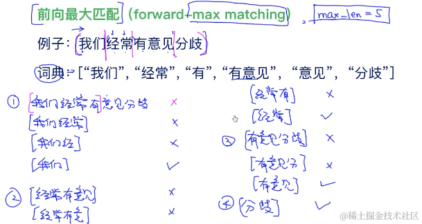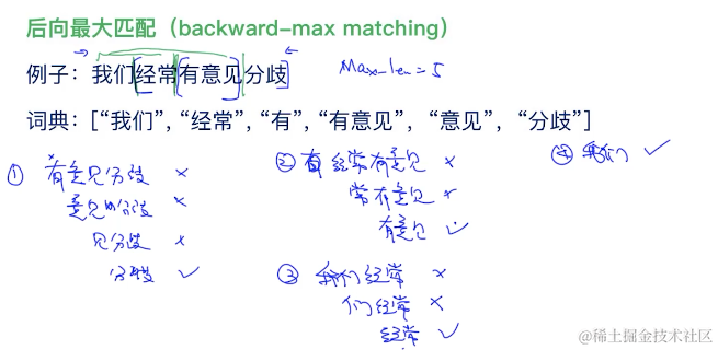 后向最大匹配: (back-ward max matching)