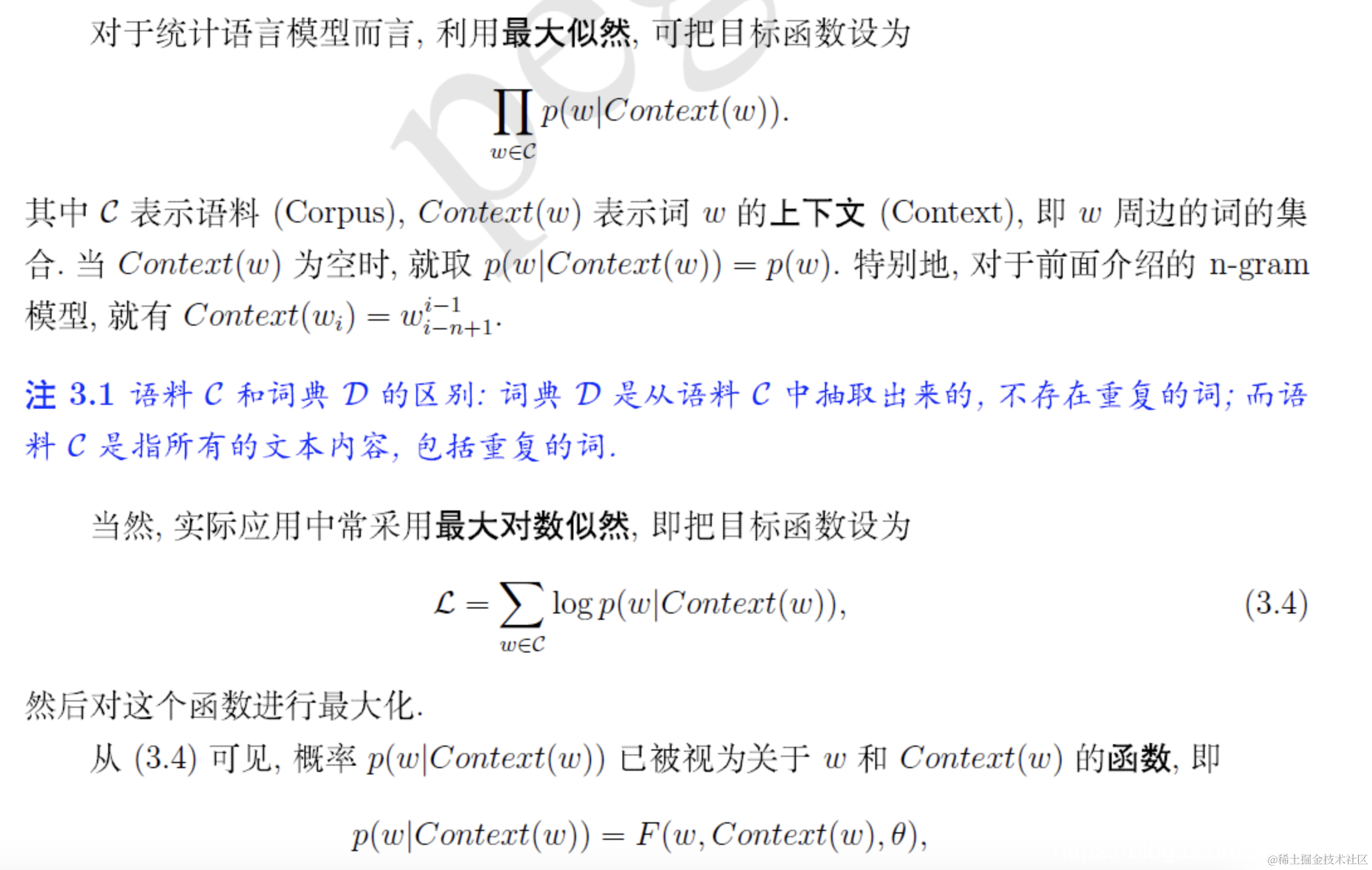 优点:(1) 采用极大似然估计,参数易训练;(2) 完全包含了前 n-1 个词的全部信息;(3) 可解释性强,直观易理解。