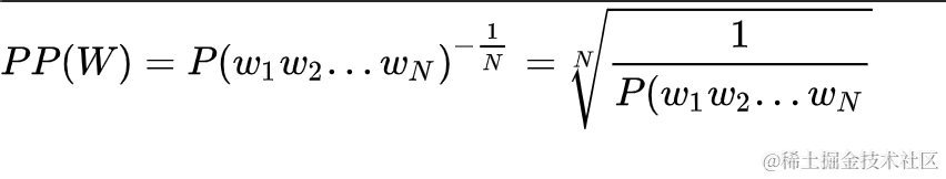 给测试集的句子赋予较高概率值的语言模型较好,当语言模型训练完之后,测试集中的句子都是正常的句子,那么训练好的模型就是在测试集上的概率越高越好, 公式如下: