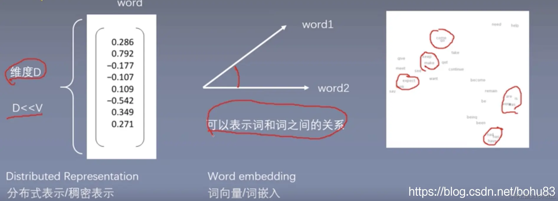 - 把字典里的每一个单词对应一个词特征向量