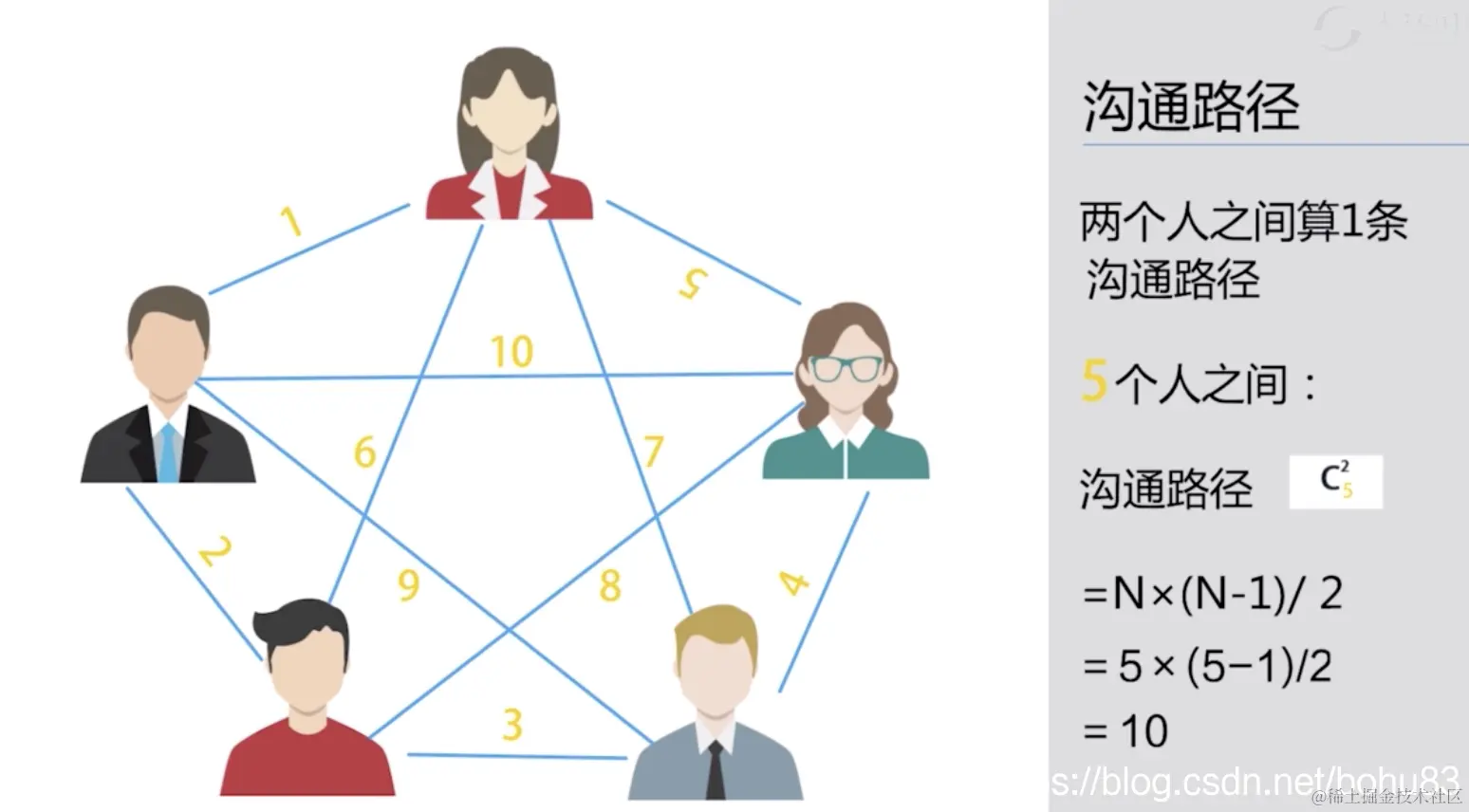 上面是2人之间算一条沟通路径。