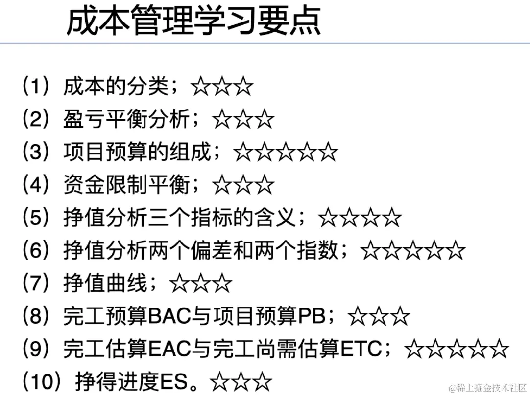 成本管理学习的要点