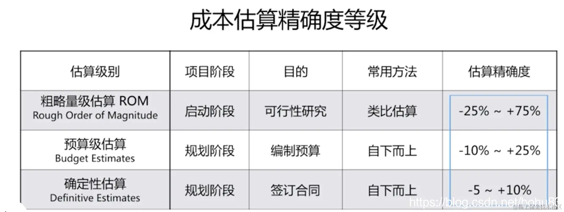 3个估算成本的精度标准