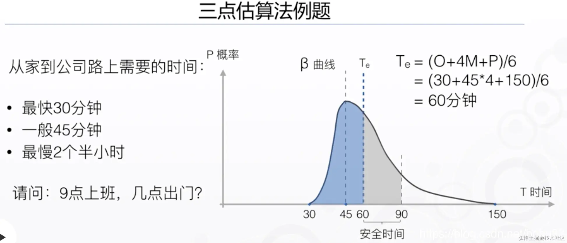 三点估算法(也叫pert 计划评审技术):会根据公式计算出期望值(50%的概率)